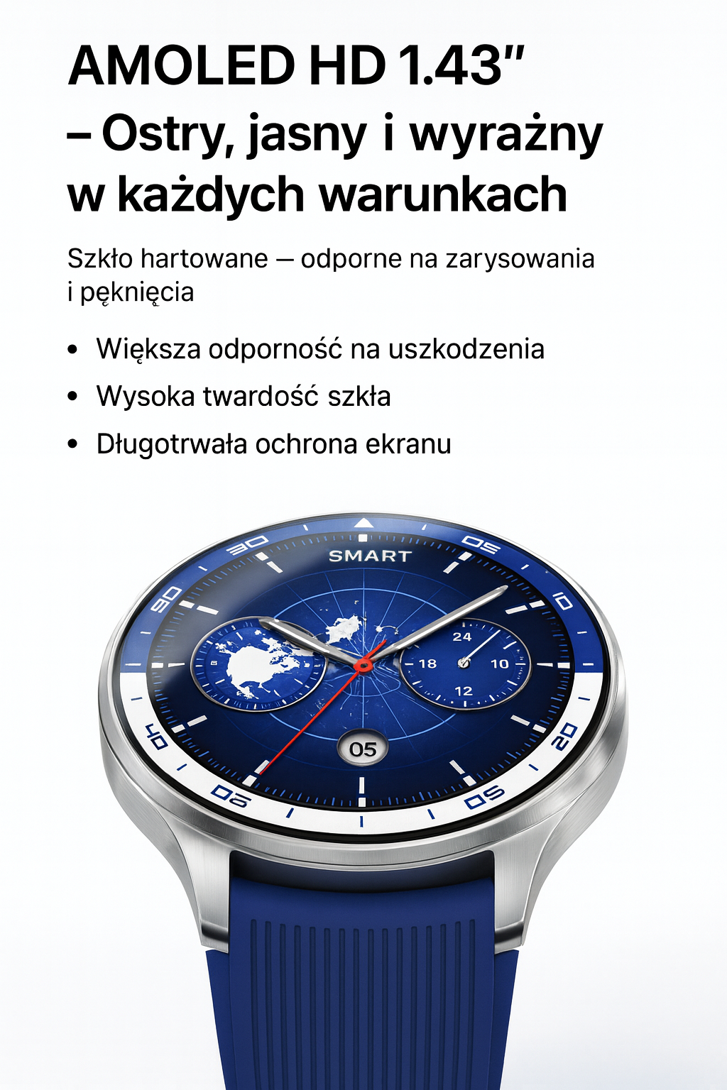 AMOLED HD 1.43” — wyraźny w każdych warunkach