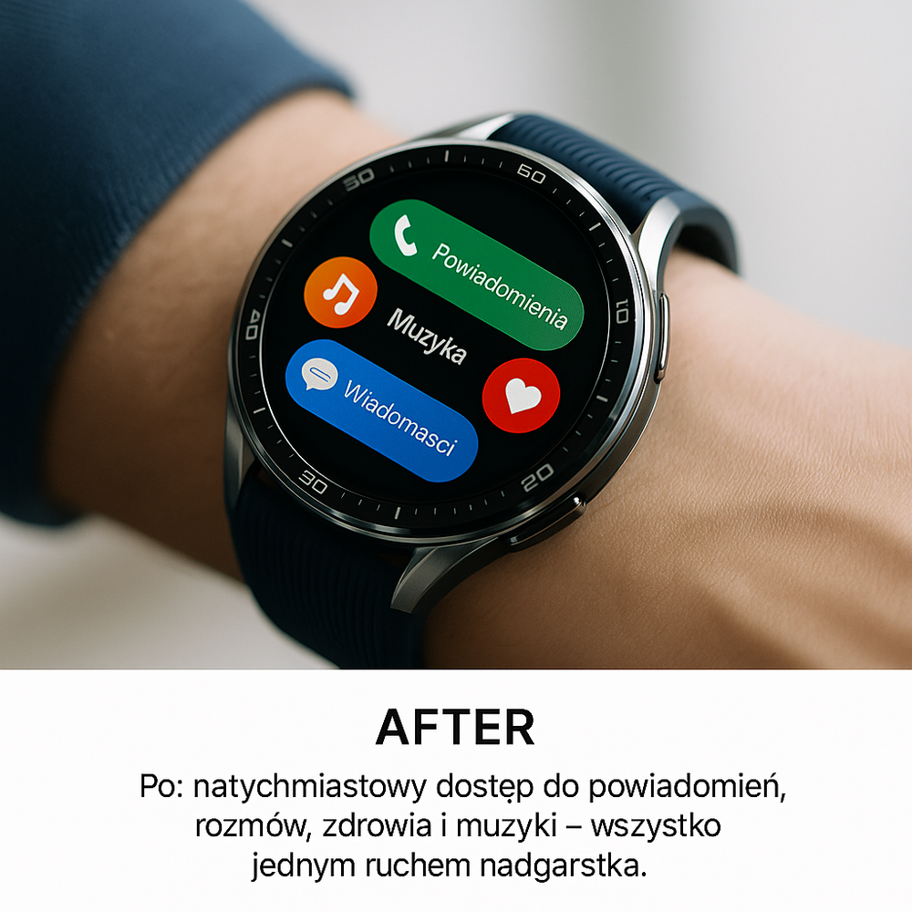Rozmowy Bluetooth 5.3, kalendarz i powiadomienia pozwalają ogarniać dzień bez ciągłego wyciągania telefonu.