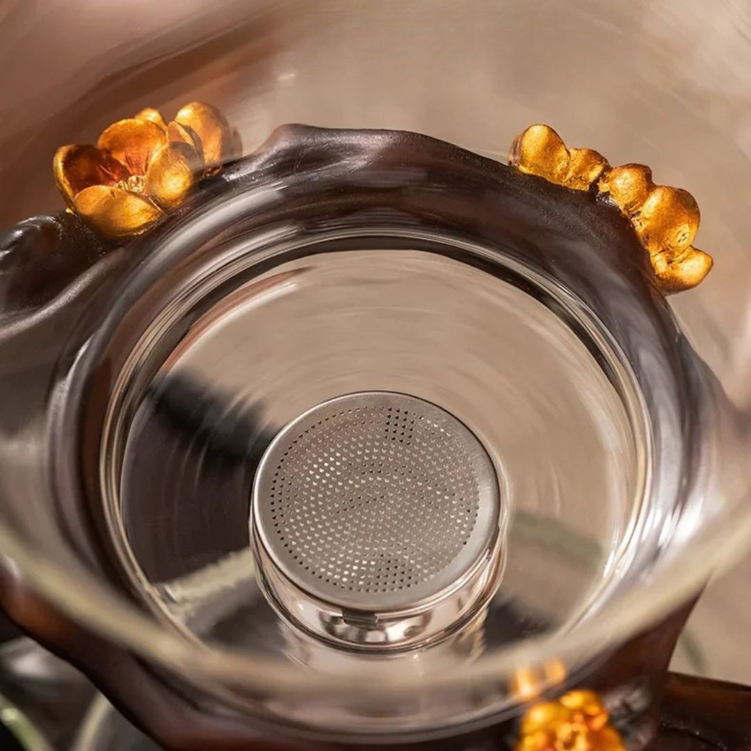 Połączenie klarownego szkła i ręcznie wykańczanej podstawy z poliżywicy tworzy efektowny akcent na stole, który ułatwia stylowe serwowanie herbaty.